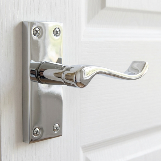 Door Handles Victorian Scroll Lever Latch - Chrome 118 x 40mm