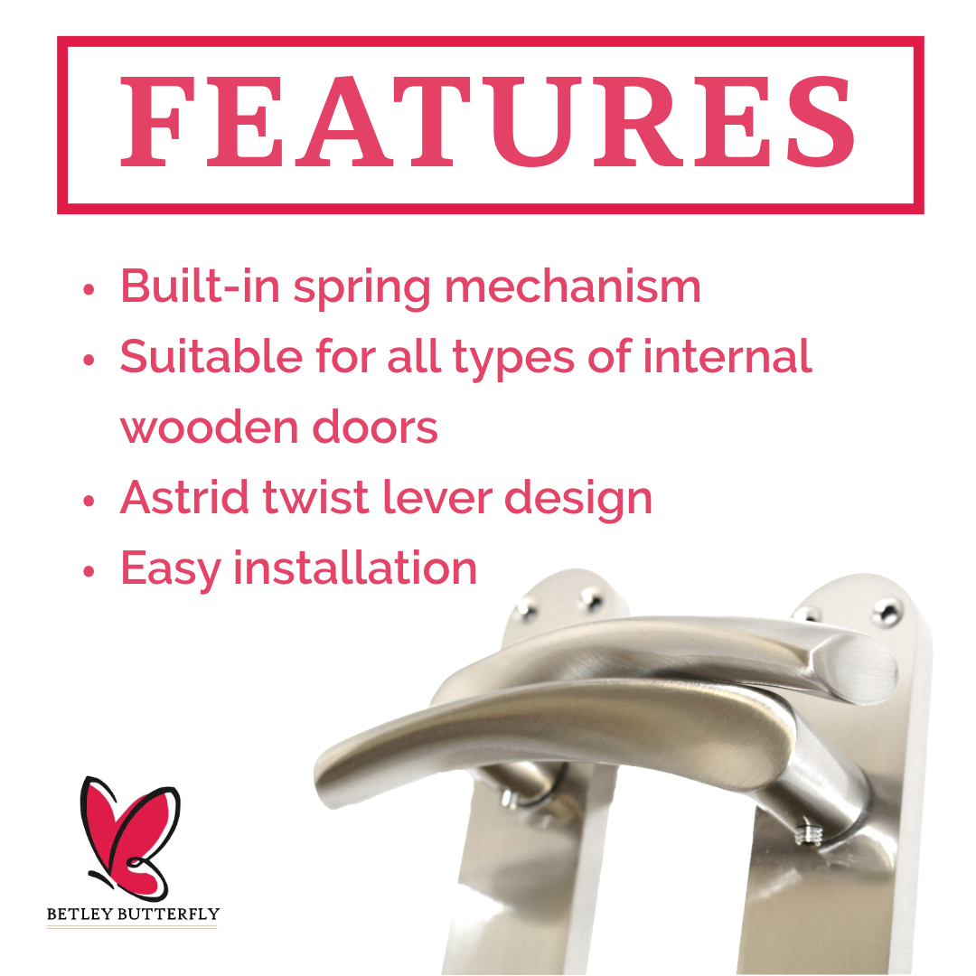 Poignées de porte de salle de bain Monja Astrid à levier arqué et serrure satinée